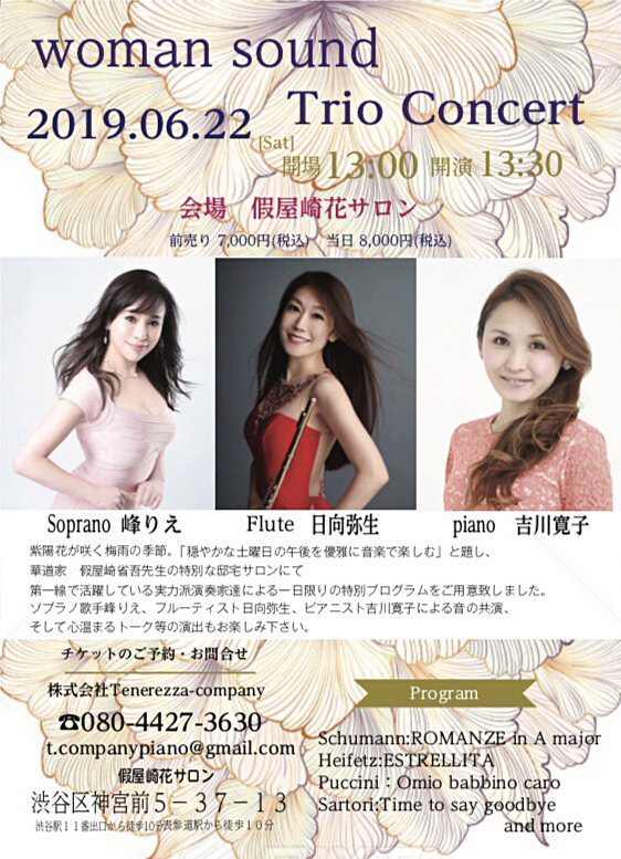 假屋崎省吾さんの素敵なサロン假屋崎花サロンにてソプラノ、フルート、ピアノ女性3名のtrioコンサートを開催致します。